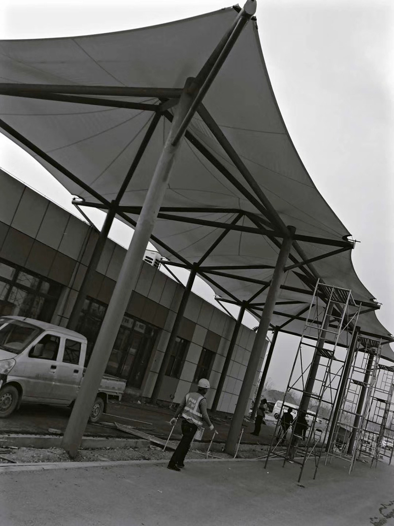 在制作过程中要加强质量管理,保证制作精度。在膜结构制作前,需要对工程所用膜材及配件按设计和规范要求进行材质和力学性能检验,如膜材的双向拉伸试验。